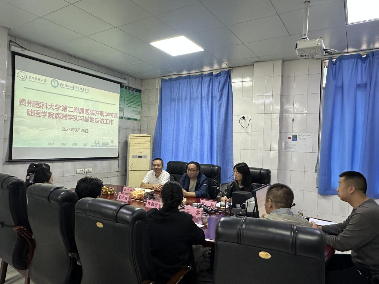 为保障医学实验技术专业本科生首次在贵州医科大学第二附属医院(以下简称 “二附院”)病理科开展毕业实习工作顺利推进,充分了解实习基地条件、明确合作细节,9月26日,基础医学院团队前往贵医二附院病理科开展专项走访,为后续实习工作筑牢基础。