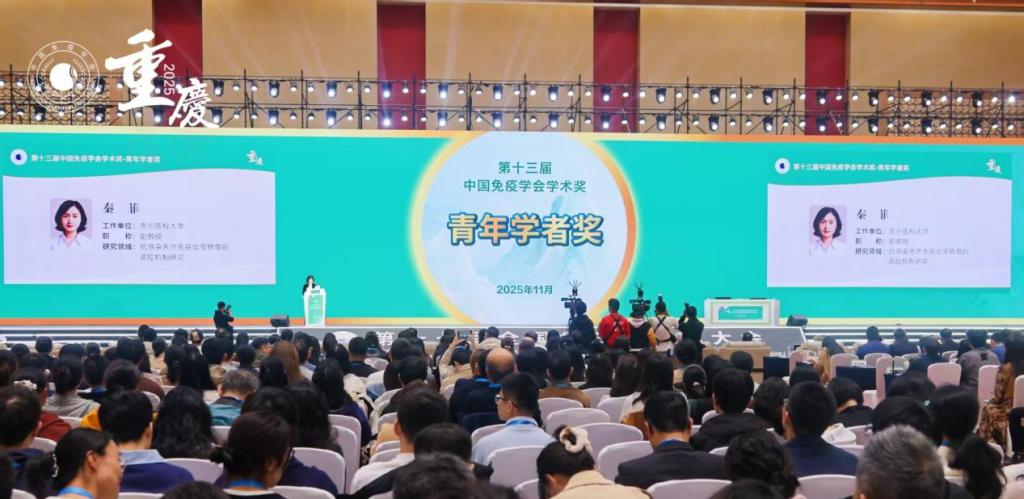 2025年11月6-9日,第十七届全国免疫学学术大会在重庆悦来国际会议中心召开。参会代表人数达到5000余人,是国内免疫学领域层次最高、覆盖面最广的学术盛会。会议期间,中国免疫学会颁发了第十三届中国免疫学会三大学术奖:终身成就奖1名、杰出学者奖2名和青年学者奖10名。我校基础医学院免疫学教研室青年教师秦菲荣获“第十三届中国免疫学会青年学者奖”。